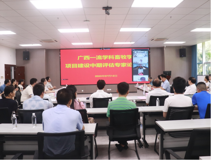 2023年7月12日上午,广西新一轮一流学科畜牧学项目建设中期评估专家论证会在亚热带生物资源保护与利用重点实验室107会议室召开。中国农业科学院北京畜牧兽医研究所文杰研究员、华中农业大学赵书红教授、浙江大学汪以真教授、华南农业大学聂庆华教授、贵州大学杨增明教授、海南大学王凤阳教授、云南农业大学邓卫东教授应邀组成专家组,对我院的广西一流学科畜牧学项目建设中期情况进行评议。