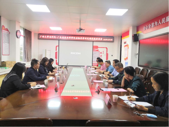 陆阳清概括性地介绍了学院的发展历史、招生规模及特点、师资力量、人才培养体系、科研团队、科研平台建设等情况,结合广西畜牧行业特色产业及学院发展规划,提出研究所和我院的发展与目标在多方面高度契合,有着良好的合作基础,通过优势互补,实现合作共赢。希望双方在原有的合作基础上进一步加强合作纵深,在人才联合培养方面加大合作力度,在科研合作方面争取联合申报国家级重点研发项目,共同申报科研奖项等,继续扩大合作面,在动物医学、水产方面也发展联系,更期待今后能在学校与农科院层面进一步深化合作。