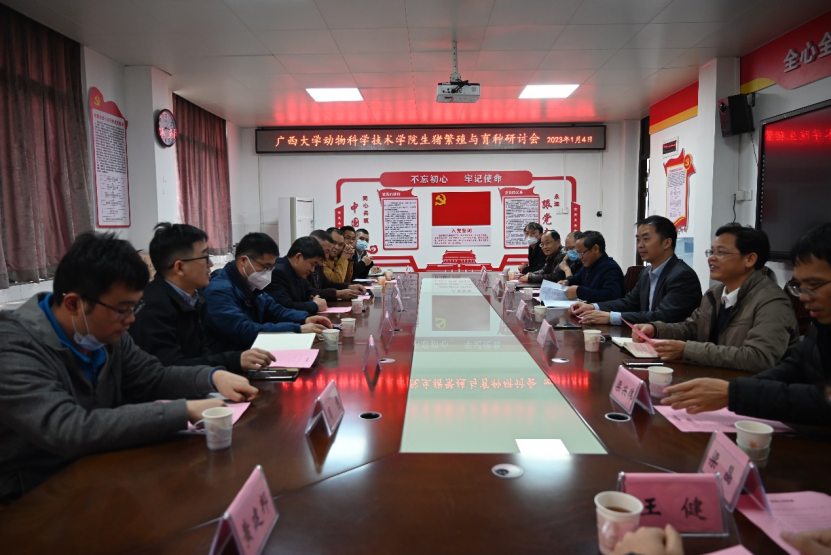 1月4日下午第一阶段“产学研用合作研讨”在我院302会议室举行,由我院何家康副院长主持。会议邀请了河南守望之境生物技术公司技术总监刘红波博士,以及广西扬翔集团、广西桂垦牧业和广西麒源牧业等公司负责人和技术总监,围绕生物育种主题开展产学研合作研讨,就动物克隆技术推动品种改良的优势、问题和前景等进行深入讨论。