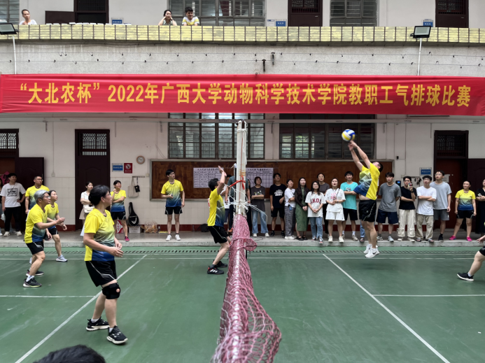 2022年世界杯竞猜足球网教职工气排球比赛从6月8日拉开序幕,我院党委书记顾慕娴、北京大北农集团饲料动保产业广西区副总经理、技术总监陈兴发参加了开幕式。