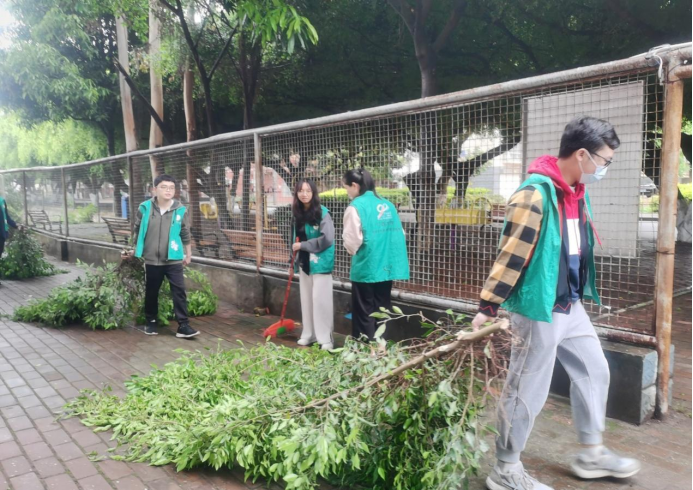 上午10点,全体同志拿上扫把、拖把、推车等劳动工具,开始了热火朝天的打扫。虽然天空下着蒙蒙细雨,但党员同志们都充满了干劲和激情,所有同志都积极投入志愿劳动,三、五人作为一个小组,有人清洁地面,有人清理杂草树枝,有人清运垃圾。大家默契配合,经过一个小时的劳动,整个球馆焕然一新。老教师们纷纷表示感谢,同志们也从劳动中收获了赠人玫瑰,手留余香的快乐。