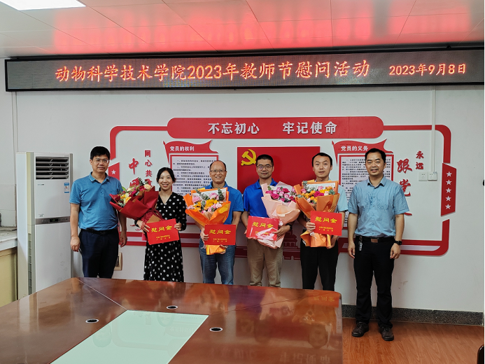 39个教师节来临之际,2023年9月8日上午,学院党委书记韦小强、院长陆阳清慰问教职工代表赵云翔、韦祖樟、宋子仪和李珣四名老师,为他们送上鲜花和慰问金,向他们致以节日的祝贺,并通过他们向全院教师致以节日的祝福。希望全院教职工不忘立德树人初心,牢记为党育人为国育才使命,共同建设好世界杯竞猜足球网,为培养新时代“五有”领军型人才作出更大贡献。慰问活动由副院长宁鹏飞主持。