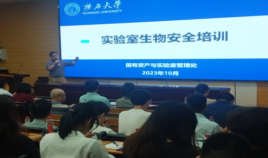 10月31日,由国有资产与实验室管理处举办的广西大学实验室生物安全培训与应急演练活动在我院开展,校党委常委、副校长宁旭初出席本次活动并作动员讲话,各教研单位实验室安全负责相关人员、相关职能部门工作人员参加活动。