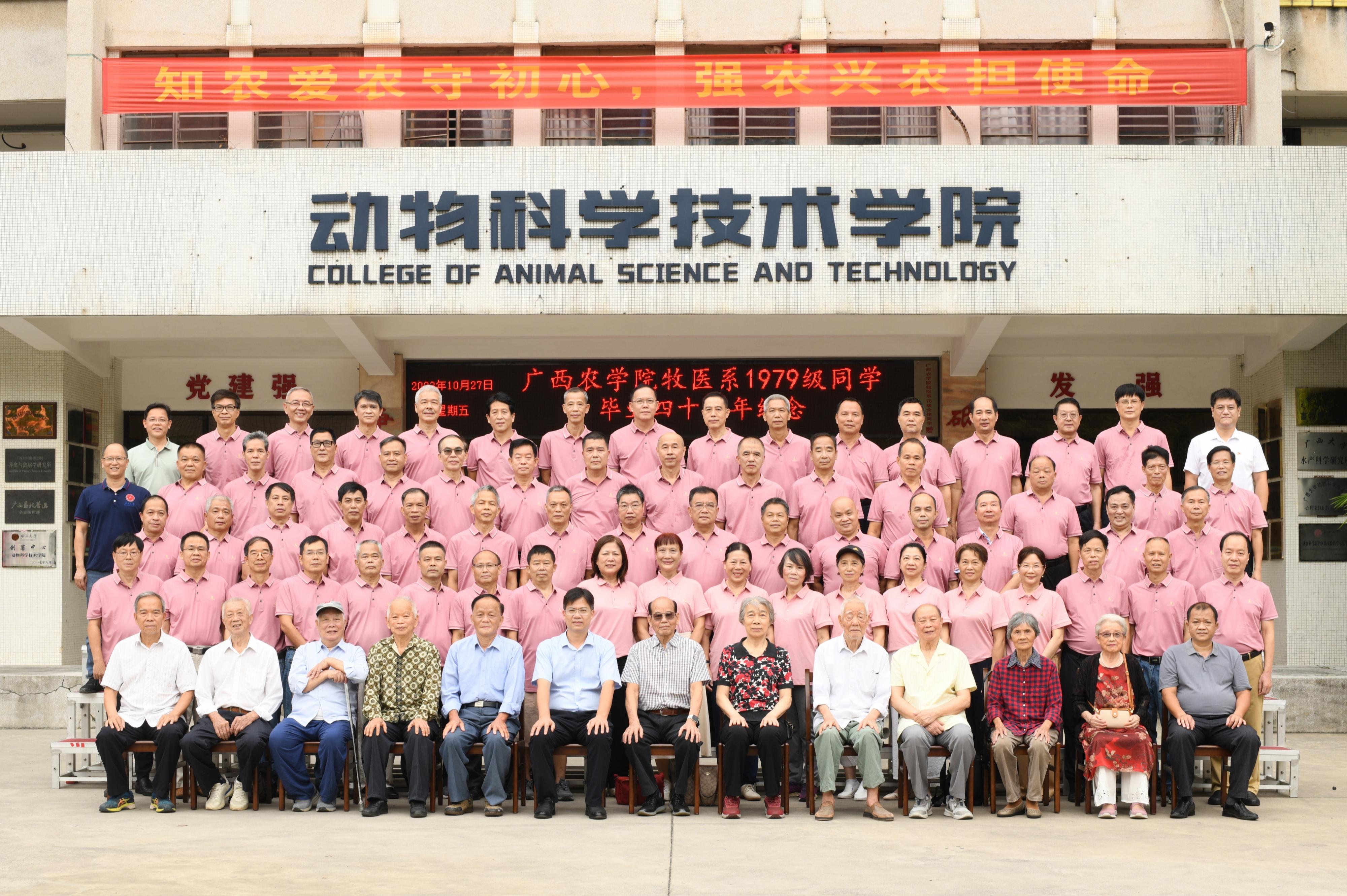 10月27日,世界杯竞猜足球网79级校友重返母校,欢聚一堂,在院史馆举办毕业四十周年师生联谊座谈会。广西大学原副校长卢克焕、黄维义,世界杯竞猜足球app党委书记韦小强,副院长宁鹏飞,李琼华、梁自诚等9位教师代表,以及来自79级畜牧班、兽医一班、兽医二班的62位校友参加此次座谈,会议由广西大学原副校长、79级校友代表罗廷荣主持。