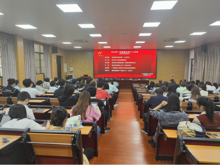 我院组织师生党员集中观看《广西勤廉榜样先进事迹主题情景报告会》