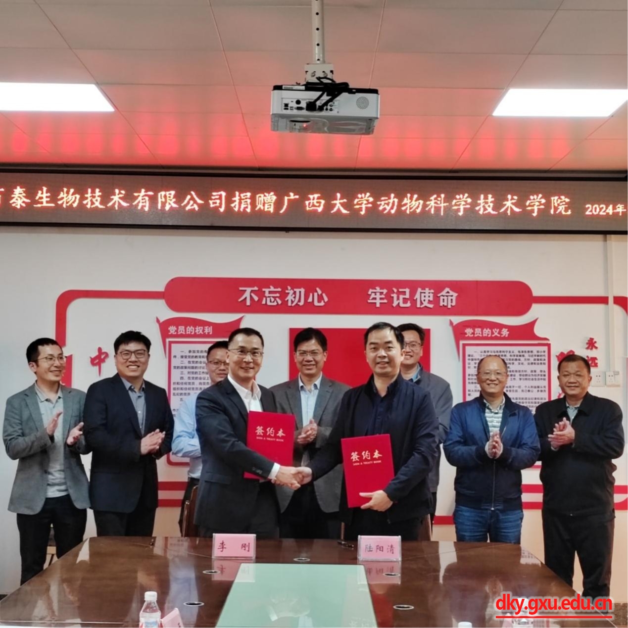 11月29日下午,世界杯竞猜足球app-北京金诺百泰生物技术有限公司捐赠仪式在学院302会议室进行。北京金诺百泰生物技术有限公司通过广西大学教育发展基金会向世界杯竞猜足球app捐赠50万元人民币,用于支持世界杯竞猜足球app本科和研究生培养工作。