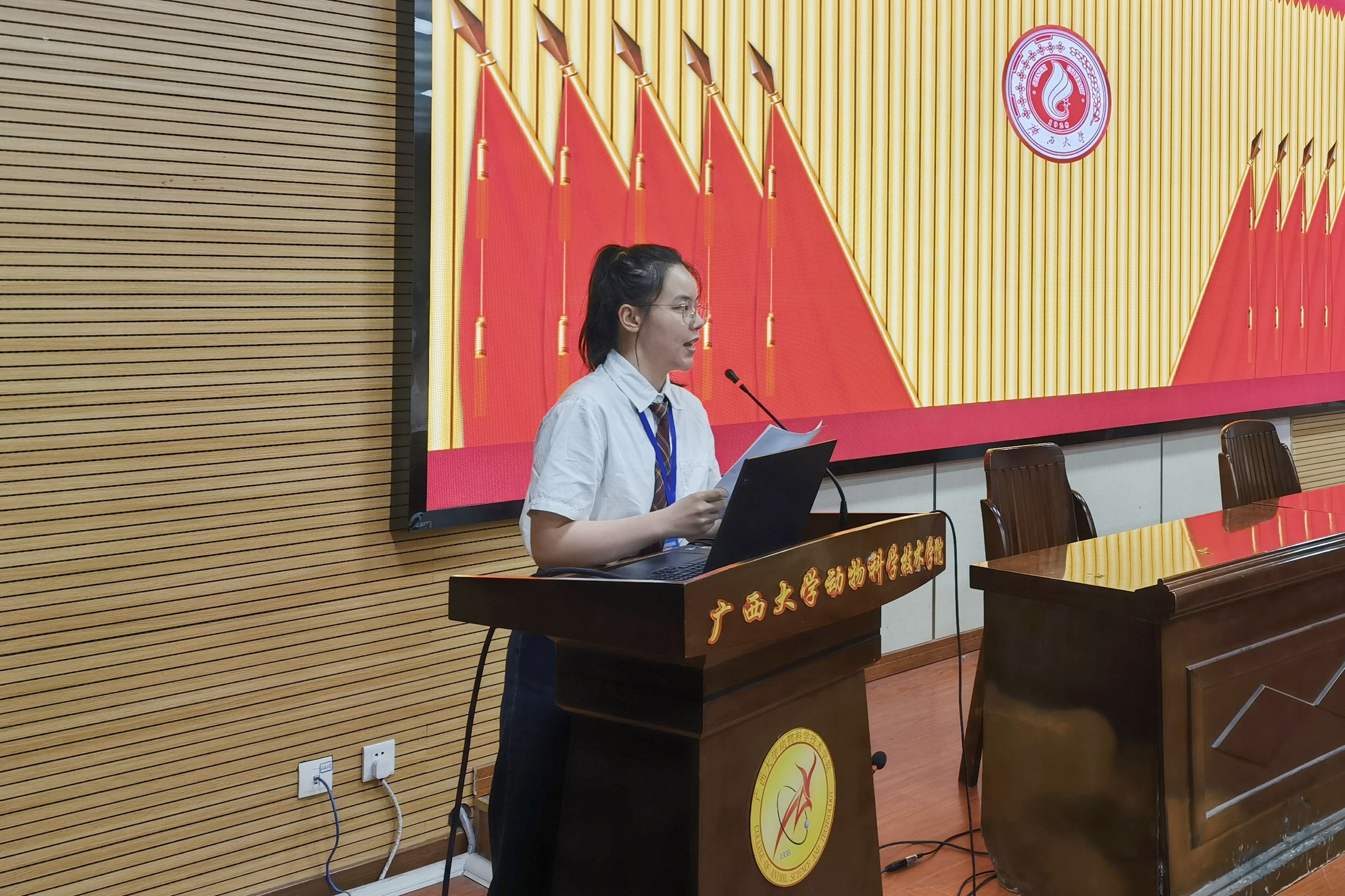 广西大学研究生会主席团成员覃湘怡同学、计算机与电子信息学院研究生会执行主席史承悦同学分别在大会上致辞。