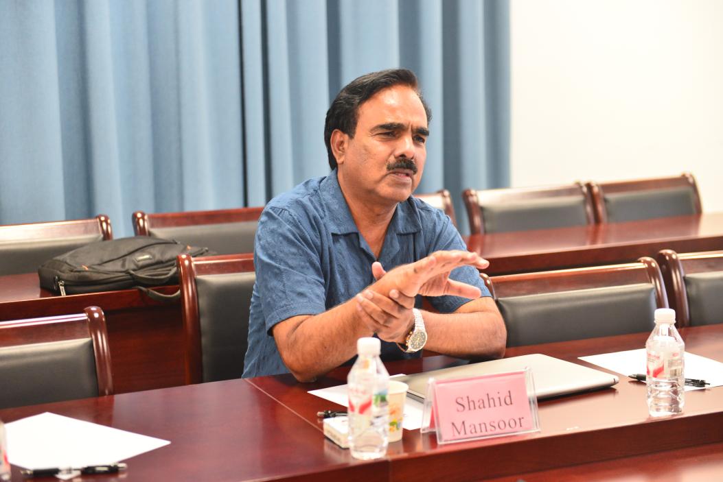 在交流研讨环节中,Shahid Mansoor教授与学院参会师生聚焦水牛相关领域,围绕水牛研究方向、中巴农业科技合作路径和产业化落地等议题展开热烈讨论,针对巴基斯坦农业资源适配技术研发等问题交换意见,为后续学术合作与技术交流奠定基础。