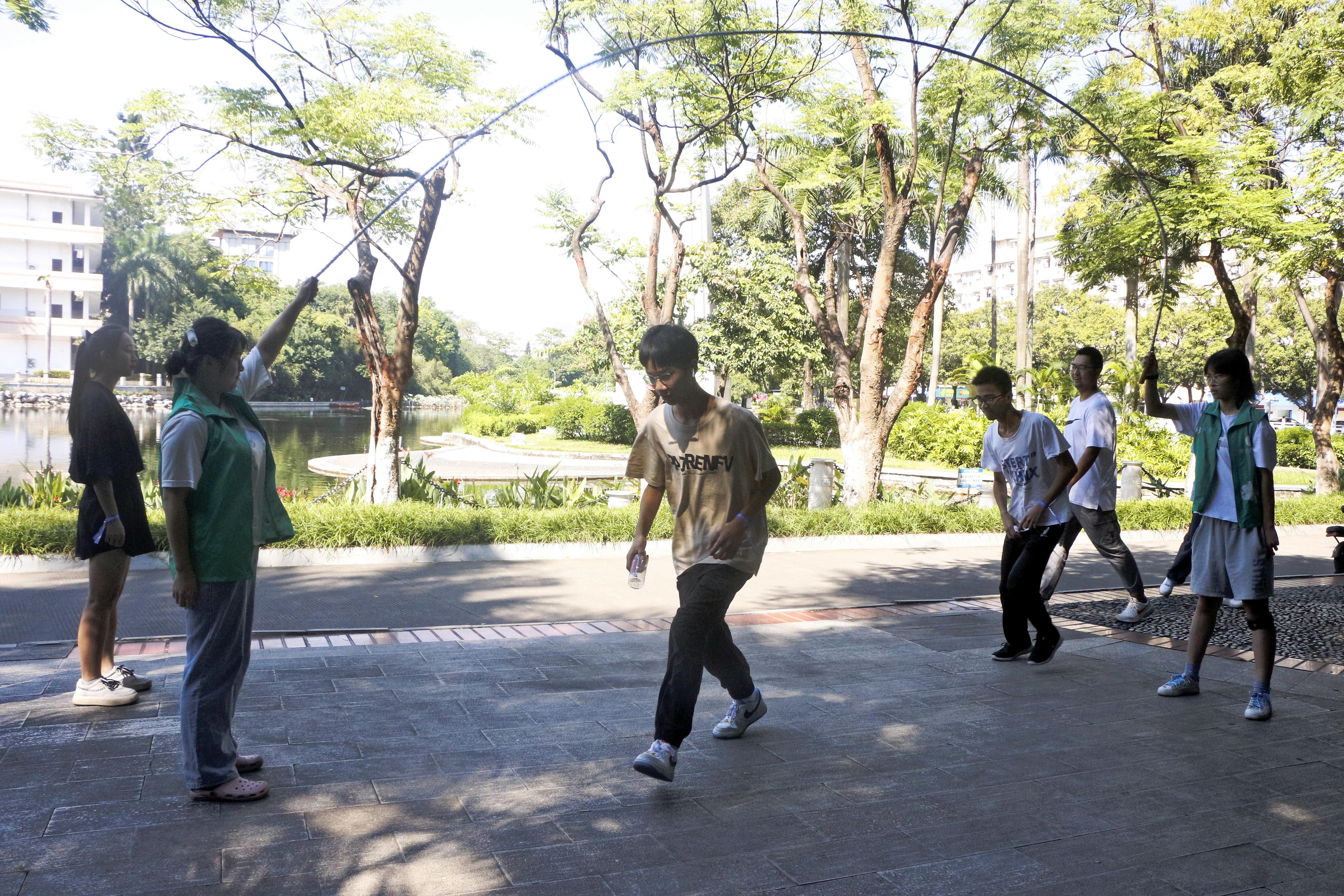 本次活动以游戏为载体,以运动为依托,分别在育才广场、大礼堂、汇学堂、图书馆、大学生活动中心、学生军纪念碑等校园标志性区域设置了6个游戏站点。世界杯竞猜足球app2022级本科生全员参与,随机分为20组,通过不同路径前往游戏站点,进行了“你的名字”、背篓接绣球、胯下传球、两人三足、夹乒乓球、接力长绳等寓教于乐的团队训练项目,使得大家既在轻松有趣的氛围里,以游戏的形式增进了彼此间了解和信任,又在充满挑战的环境中,以团队的方式感受到集体的力量和智慧。