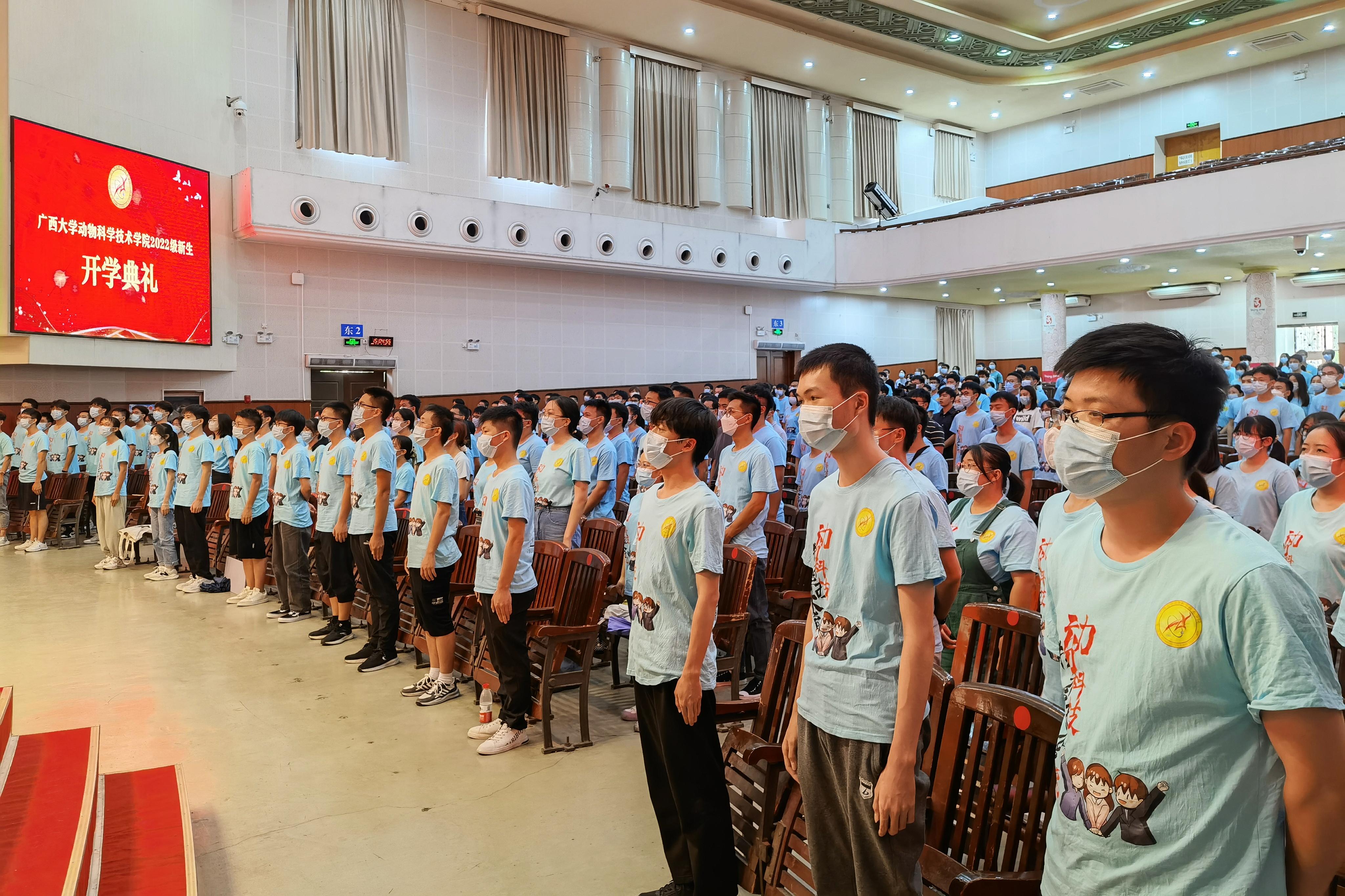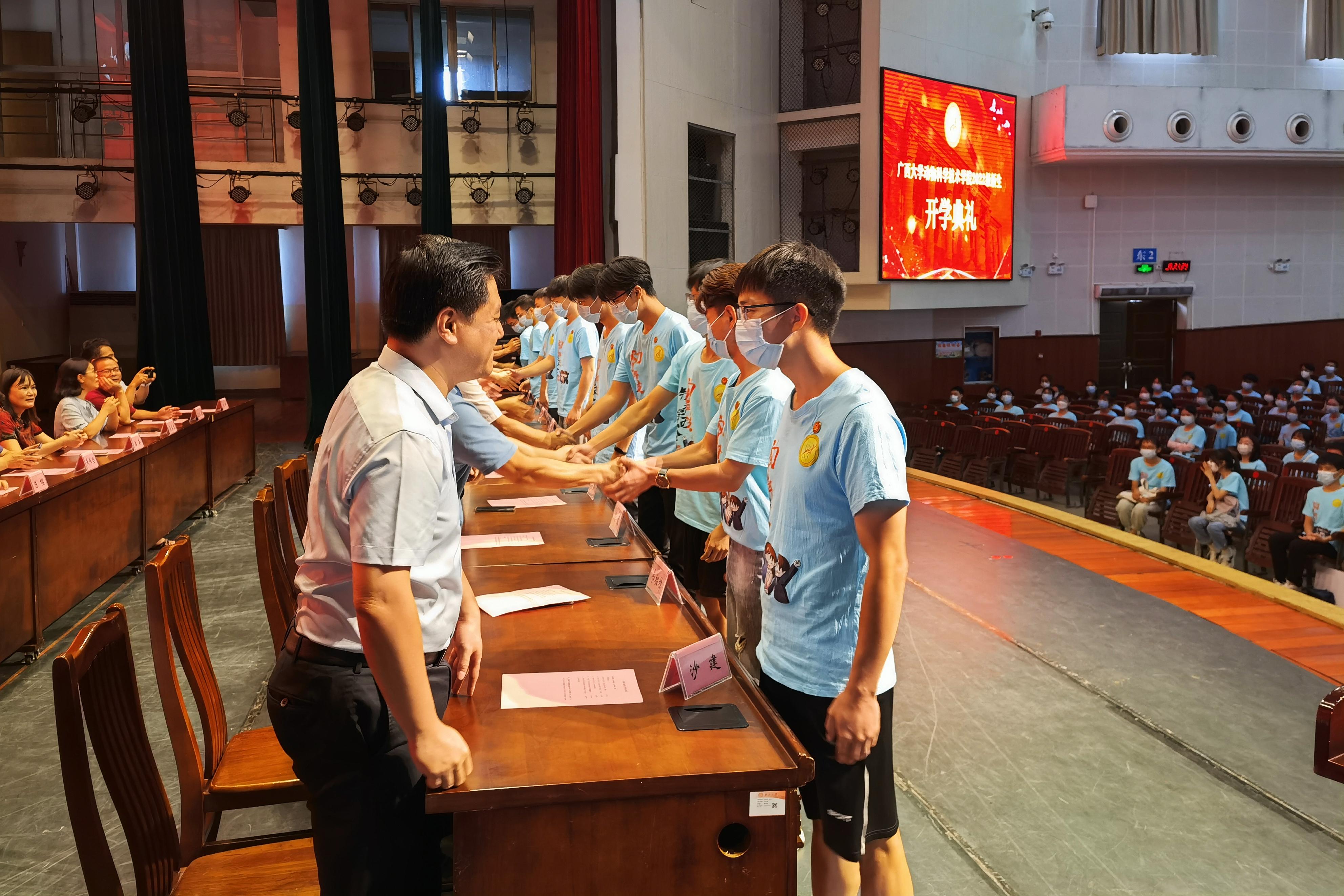 9月17日下午,世界杯竞猜足球网2022级新生开学典礼在大礼堂举行。广西大学党委常委、副校长、教务长罗廷荣,原副校长卢克焕,世界杯竞猜足球app党委书记顾慕娴,常务副院长陆阳清,原院长石德顺,科技处副处长司红彬,副院长周磊、宁鹏飞、何家康、韦祖樟出席典礼。世界杯竞猜足球app党委副书记沙建主持典礼。知名专家和教师代表、班主任、辅导员以及2022级520名新生参加活动。