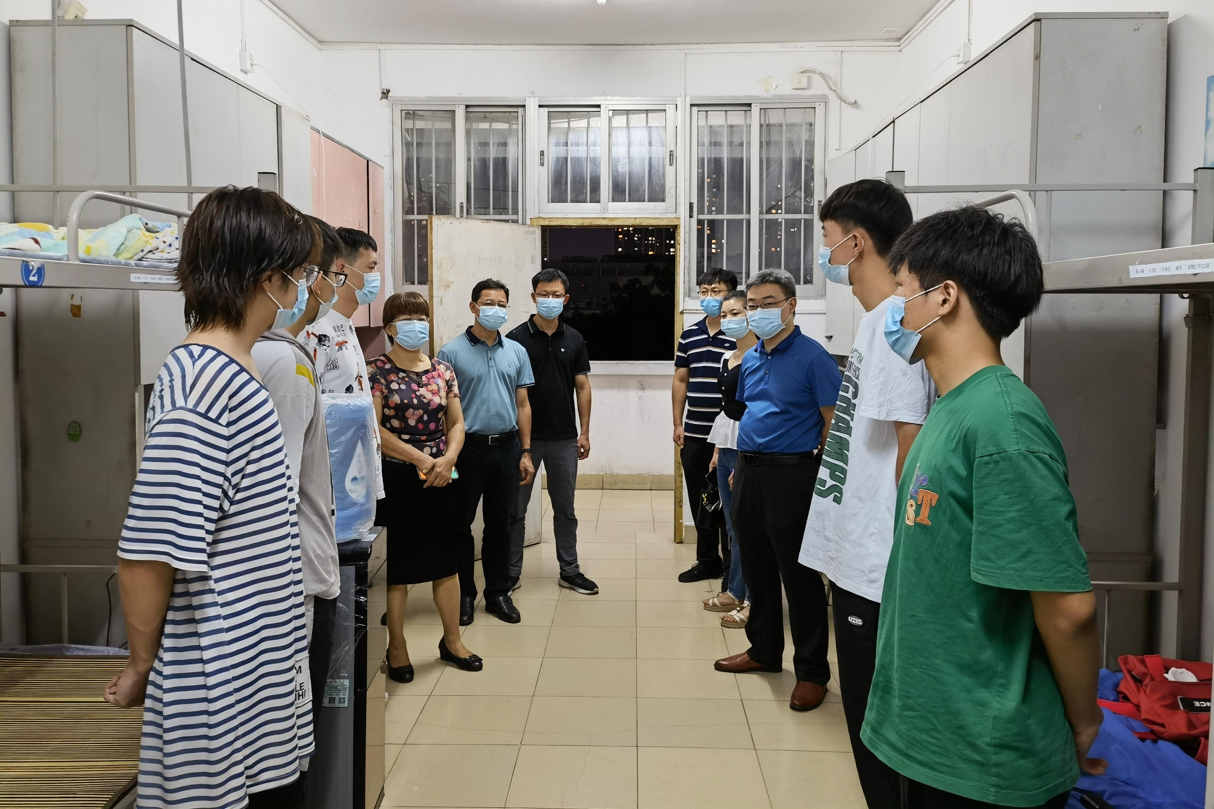 9月9日晚上,世界杯竞猜足球网党委书记顾慕娴,常务副院长陆阳清,副院长周磊、何家康、韦祖樟,团委书记李丽娜,团委副书记刘诚,辅导员崔月明、邹佳琪,班主任曾芸、李辉、孔志伟、王健、欧伟豪、梁正敏、覃一峰,以及团委、学生会、研究生会学生骨干,来到东1A栋、东3栋、东29栋学生宿舍,走访慰问世界杯竞猜足球app2022级本科生、研究生。