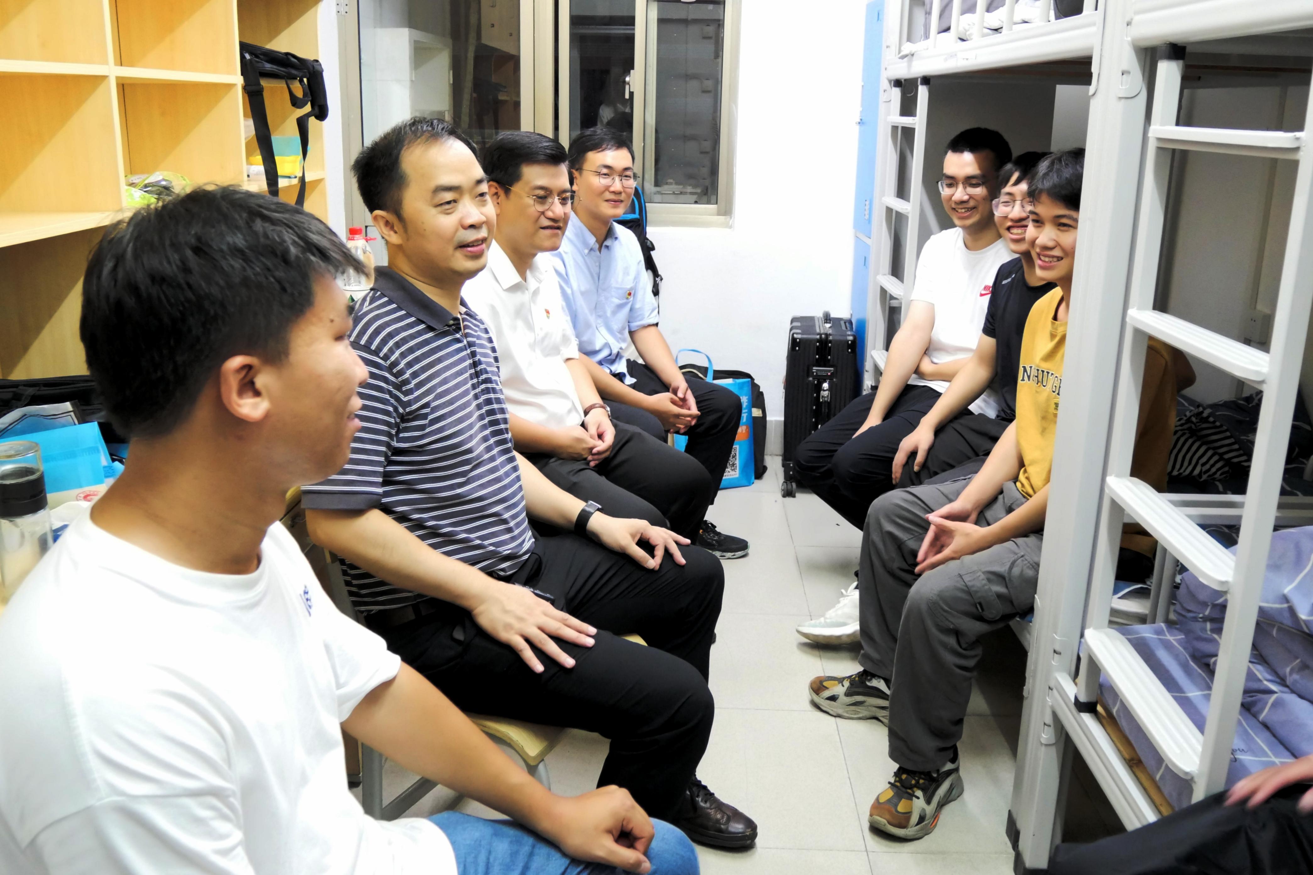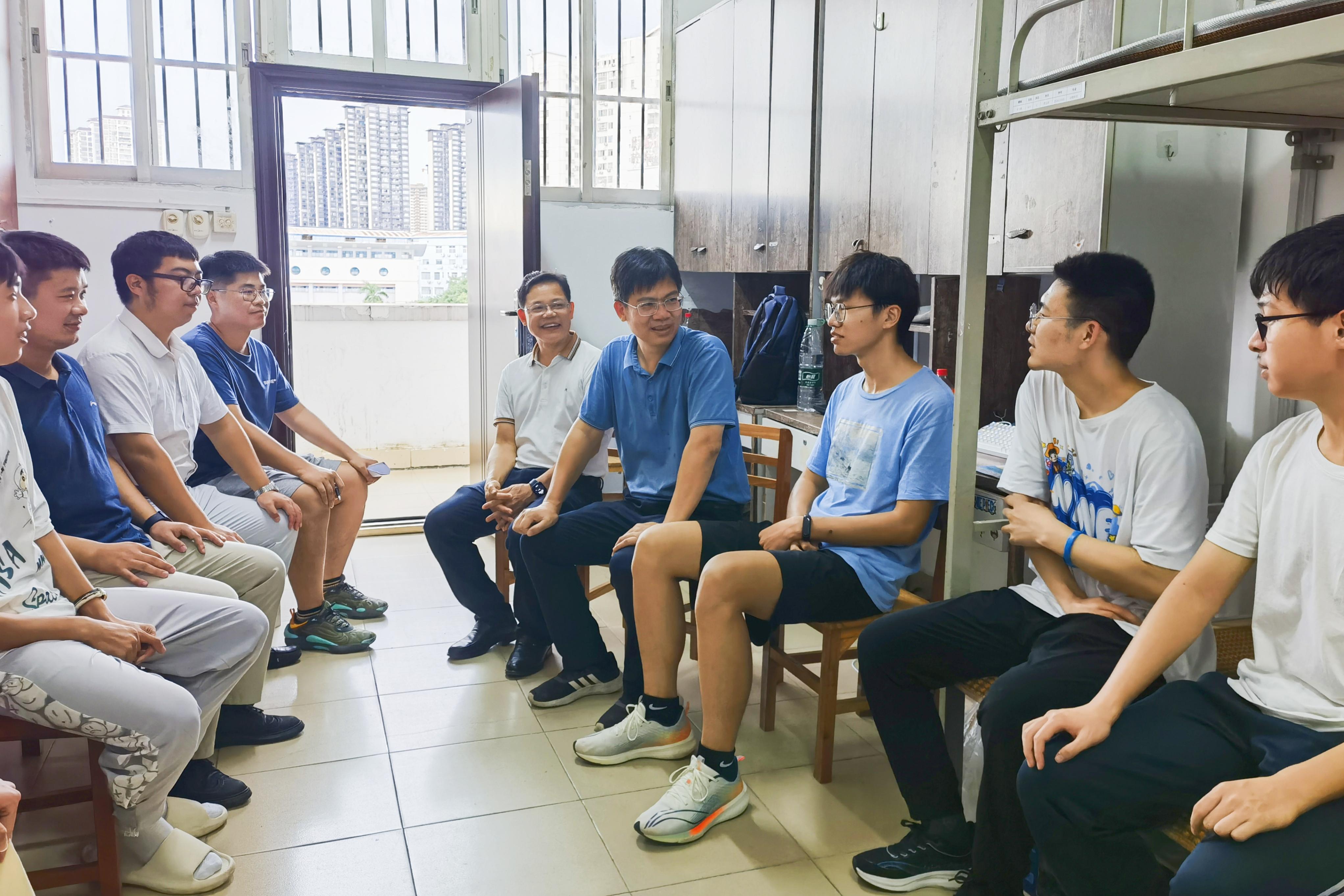 9月9、10日下午,世界杯竞猜足球网党委书记韦小强,院长陆阳清,党委副书记沙建,副院长宁鹏飞、何家康、韦祖樟,院长助理、动物科学系主任蒋钦杨,动物医学系主任陈樱,团委书记李丽娜,团委副书记刘诚,辅导员彭可可、邹佳琪、马朝阳,班主任庄站伟、张瑞门、冉明霞、钟秋、韦懿仙、陈富美、牟婧、雷磊,以及团委、学生会、研究生会学生骨干,来到东1A栋、东16栋、东22栋、西21栋学生宿舍,分别走访慰问世界杯竞猜足球app2023级本科生、研究生。