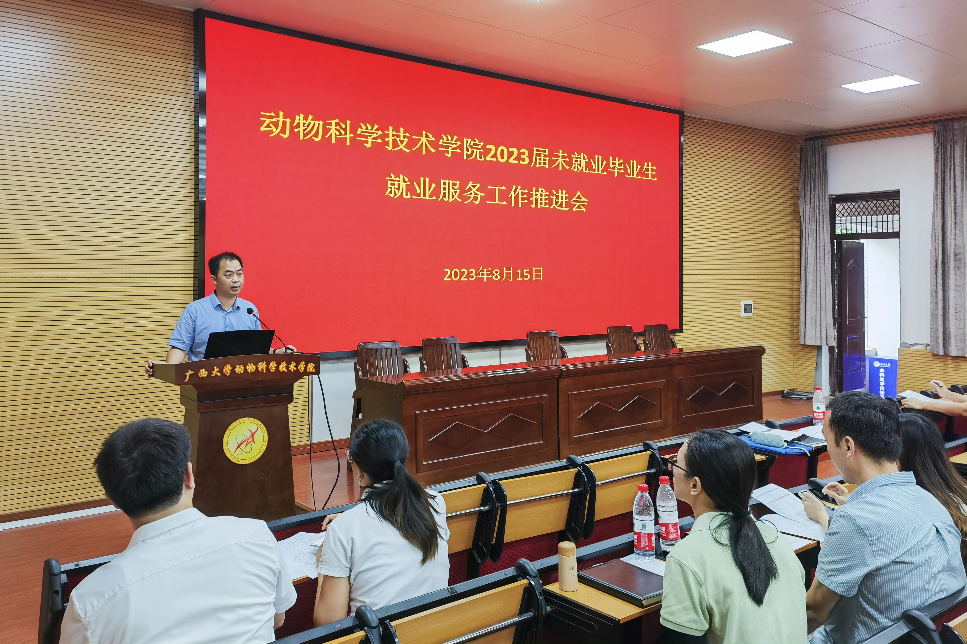为贯彻落实党中央、国务院关于高校毕业生就业工作的决策部署,全力推进毕业生更加充分更高质量就业,8月15日上午,世界杯竞猜足球网在学院318报告厅召开2023届未就业毕业生就业服务工作推进会。世界杯竞猜足球app党委书记韦小强,院长陆阳清,党委副书记沙建,副院长宁鹏飞、韦祖樟,以及专职辅导员、研究生导师、毕业班级班主任参加会议。