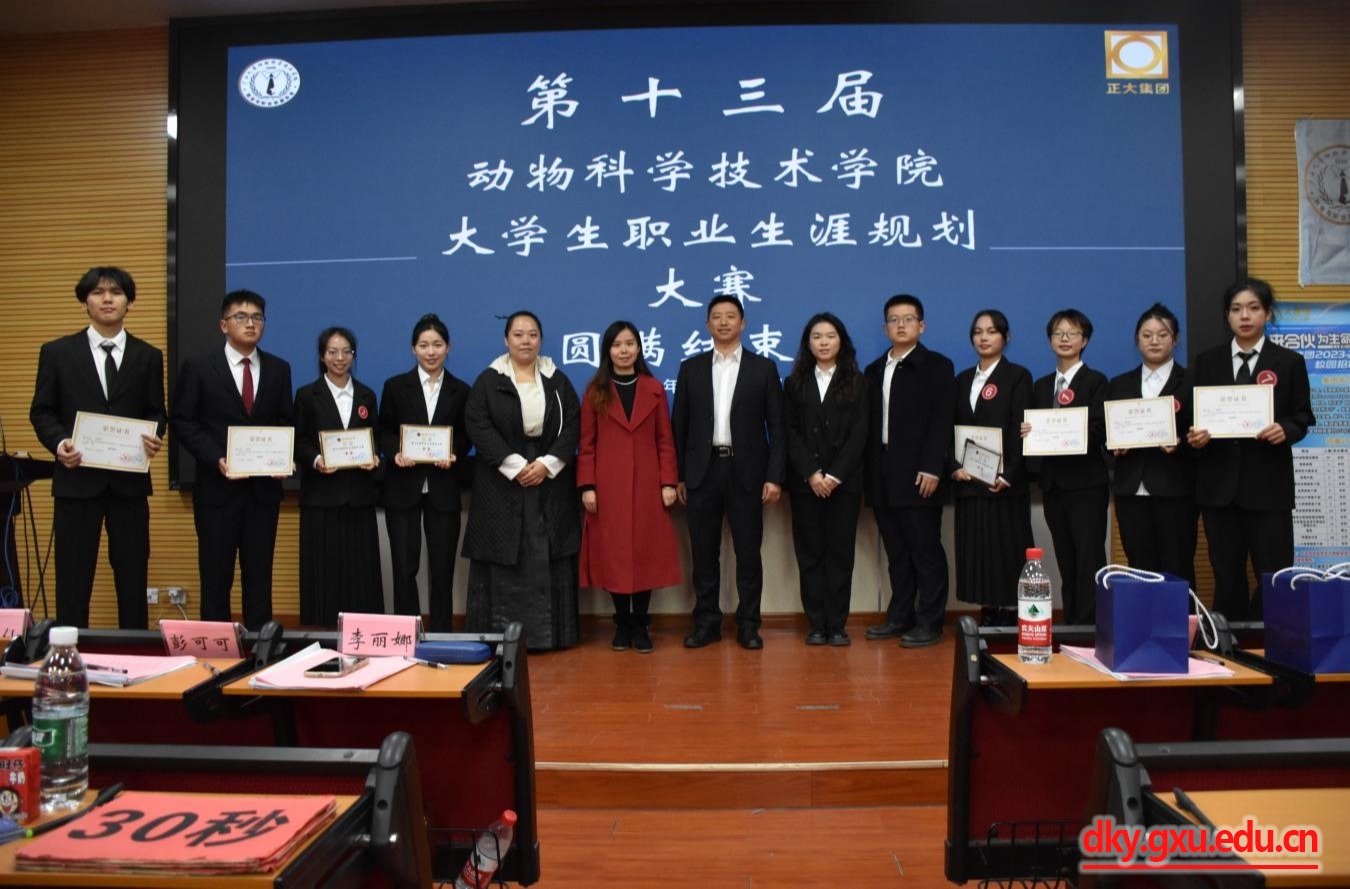 12月17日,世界杯竞猜足球app第十三届职业生涯规划大赛决赛在学院318报告厅举行。正大饲料(广西)有限公司总经理马春庆,人力资源经理莫仙梅,人力资源专员蓝震武,动物科学技术学院团委书记李丽娜,辅导员彭可可,专业老师韦懿仙应邀出席此次活动并担任评委,各兄弟学院就业协会代表及100余名学生参加此次活动。