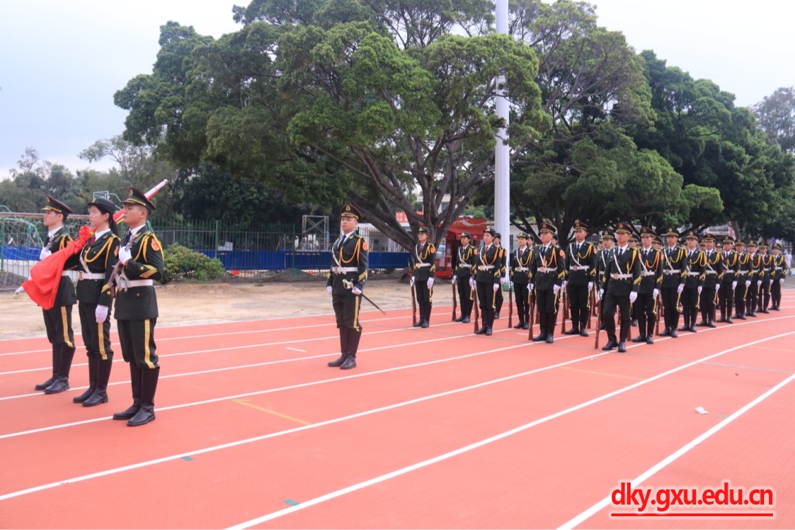 10月1日,世界杯竞猜足球app师生齐聚学校西校园田径场,与其他学院代表一道,参加国庆75周年升国旗仪式。学院党委书记韦小强,党委副书记沙建,团委副书记刘诚,辅导员邹佳琪、马朝阳参加此次活动。