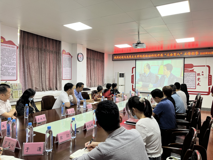 11月4日,广西大学马克思主义学院党委书记周瑞超一行18人到我院开展“三全育人”工作交流。我院党委书记顾慕娴、原教工第二党支部书记黄伟坚教授、教工第二党支部书记何家康教授分别向对方介绍我院“双带头人”教师党支部书记工作室的建设情况、党建+育人开展情况、党建+院企合作建设情况等。随后,双方就党建与业务融合发展、“党建+”优秀案例、提高专题党课质量等进行了交流。