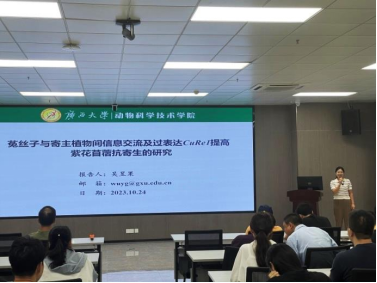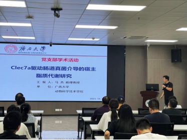 活动由教工一支部书记蒋钦杨同志主持,教工一支部成员马杰同志和吴昱果同志作为党员代表做了科研进展分享。马杰同志以“Clec7a驱动肠道真菌介导的宿主脂质代谢研究”为主题,介绍了肠道真菌在宿主脂肪代谢中作用及其调控机制。之后,吴昱果同志以“菟丝子与寄主植物间信息交流及过表达CuRel提高紫花苜蓿康寄生的研究”为主题,介绍了抗菟丝子苜蓿品种培育的最新进展。这两位党员同志的科研分享,受到在场党员同志们的一致好评,并引发热烈的讨论。支部成员杨小淦同志、宋子仪同志等同志与报告人做了较为深入的交流和讨论。