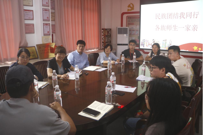 为深入学习宣传贯彻习近平总书记在党的二十大报告中关于加强和改进民族工作的重要思想,进一步弘扬爱国主义精神,加强民族团结进步教育,铸牢中华民族共同体意识,4月19日下午,世界杯竞猜足球网结合“和书记聊思想”活动,召开了以“民族团结我同行 各族师生一家亲”为主题的铸牢中华民族共同体意识师生座谈交流会。该交流会紧扣立德树人根本任务,旨在推动学院思想政治工作提质增效,更好地培养德智体美劳全面发展的社会主义建设者和接班人。世界杯竞猜足球app党委书记顾慕娴,党委副书记沙建,辅导员崔月明,组织员施君以及十名少数民族同学代表参加了本次会议。