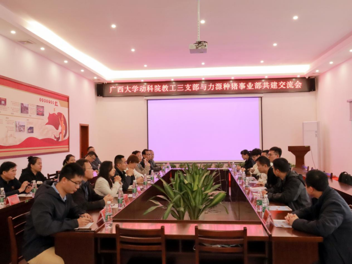 为调研区内龙头农牧企业对高校的人才和技术需求,2023年4月11日,在广西大学动物科学技术学院党委书记顾慕娴的带领下,学院副院长何家康教授、教工第三支部书记王晓晔副教授及教工第三支部全体党员同志一行走访柳州市柳江区力源中丹种猪产业示范区,与力源种猪事业部开展“产教融合”主题党建活动,并就人才培养和技术合作开展深入交流。