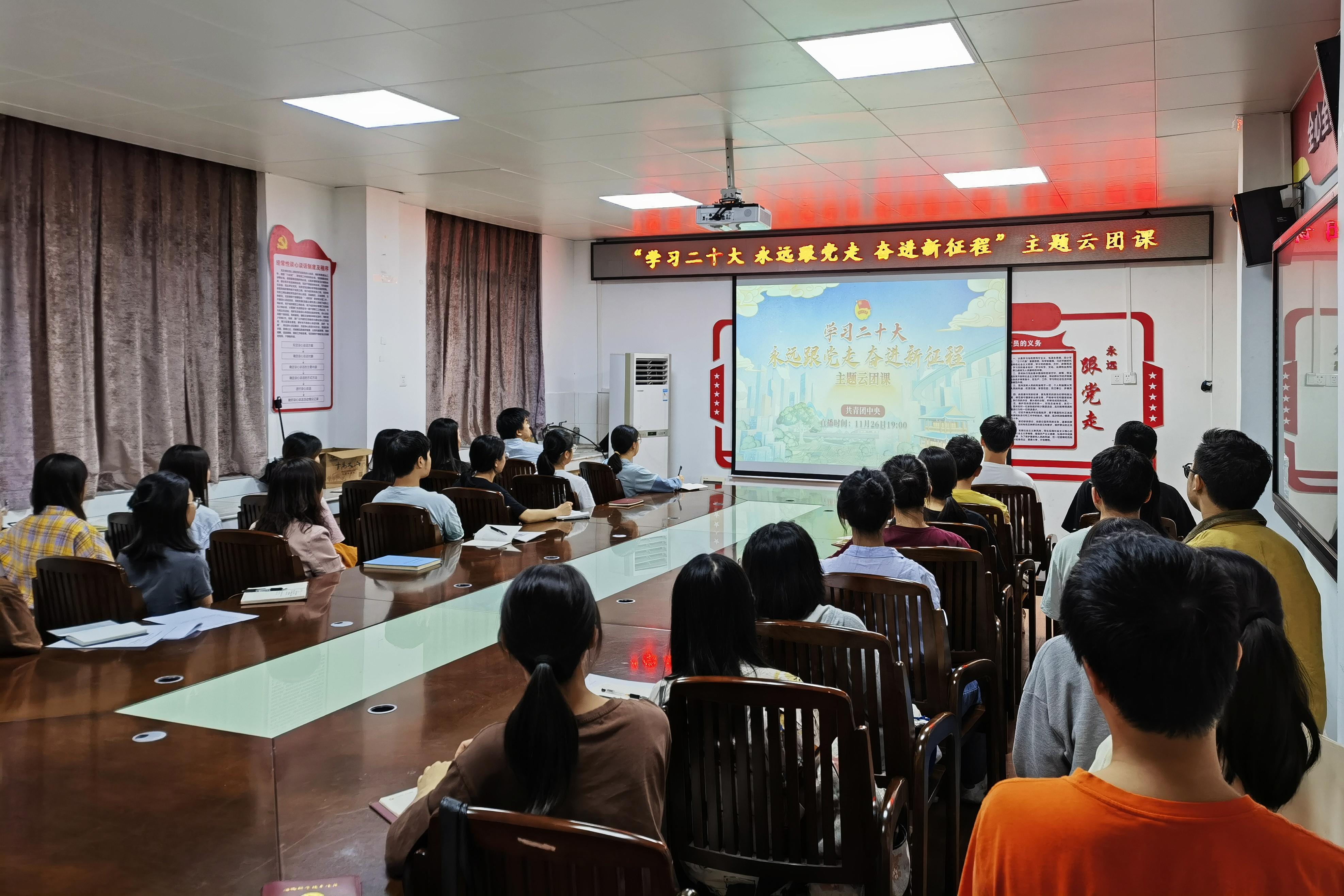 世界杯竞猜足球网团委组织广大团员青年在报告厅、会议室、教室、宿舍等场所收看主题云团课直播,引导其准确全面深刻把握党的二十大精神,持续推动党的二十大精神在青年学生中入耳入脑入心。