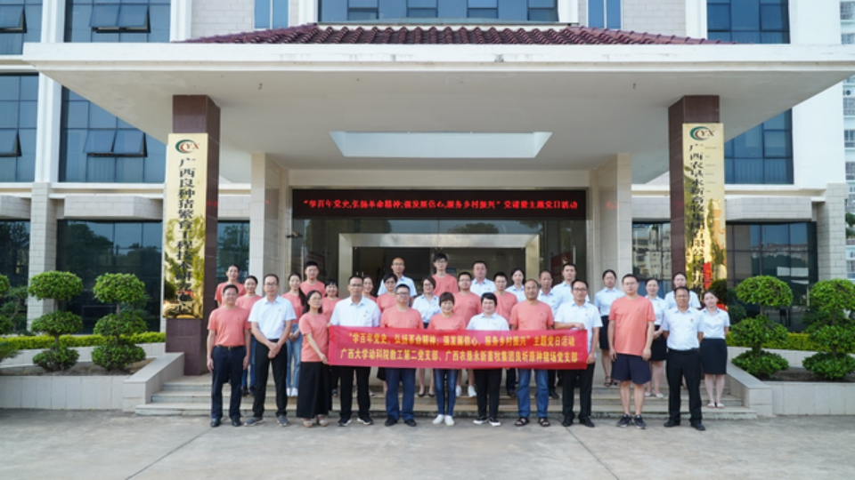 为了全面贯彻落实习近平总书记视察广西时的重要讲话和重要指示精神,推动党史学习教育与业务工作双融合双促进,世界杯竞猜足球网教工第二党支部与广西农垦永新畜牧集团有限公司良圻原种猪场党支部于7月28日联合开展专题党日活动。双方就深入学习贯彻习近平总书记在庆祝中国共产党成立100周年大会上的重要讲话精神,围绕“学百年党史,弘扬革命精神;强发展信心,服务乡村振兴”和联合共建实验室工作进展等主题进行交流,明确了努力方向。本次活动共有31位党员和公司业务骨干参加。