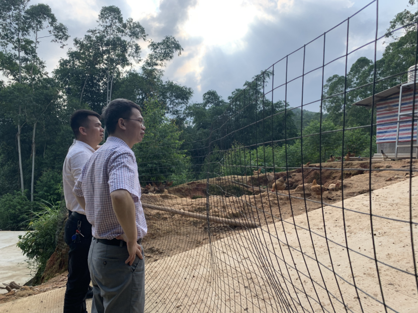 上图为韦天超副教授到大化县七百弄鸡养殖扶贫示范基地技术指导