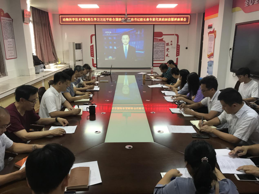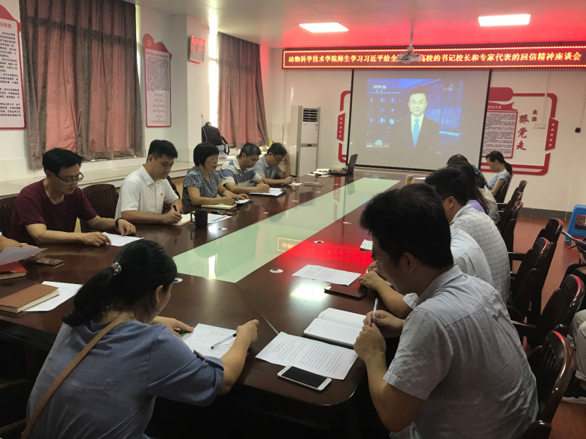 院党委书记顾慕娴主持并带领与会人员一同学习。师生同时感受到,习近平总书记的回信内容虽简短,却意义非凡,一是肯定了涉农高校自建国以来为农业农村工作所做出的贡献,二是对涉农高校办学方向和涉农高校广大师生未来的发展提出了新的要求和期望。与会人员还结合工作实际,就学习回信精神积极发表自己的感想。与会人员均表示,会认真落实总书记回信的重要精神,坚守立德树人的初心,勇担强农兴农的使命,创新教学方法,提高科研水平,培养有家国情怀的知农爱农干农的现代农业人才,以不畏艰苦的实践精神推动农业农村现代化建设,为振兴畜牧业做出应有的更大的贡献。