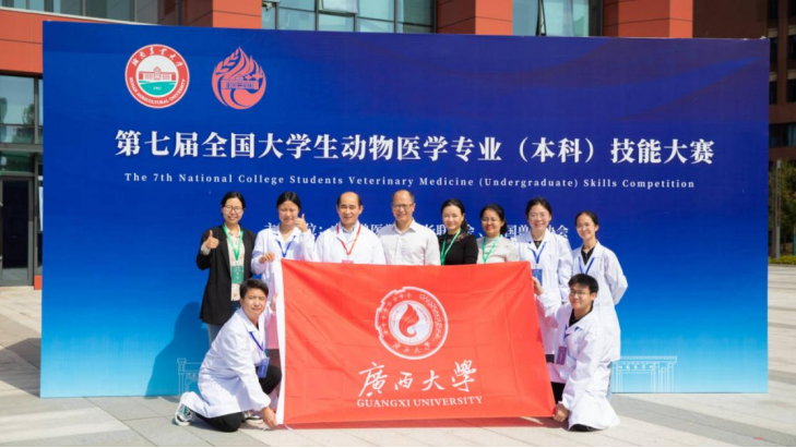 2023年10月21日~24日,由中国兽医学院院长联席会和中国兽医协会主办的第七届全国大学生动物医学专业(本科)技能大赛在湖南农业大学举行。本次大赛共有来自全国相关专业高校的72支队伍参赛,我院韦祖樟副院长担任领队,刘芳老师、邹灵秀老师、师铭咸老师和于美玲老师作为指导老师率队参加比赛,学生石瀚瑜、黎波宏、郭炎凤、张明霞、兰元蕾代表广西大学参赛。
