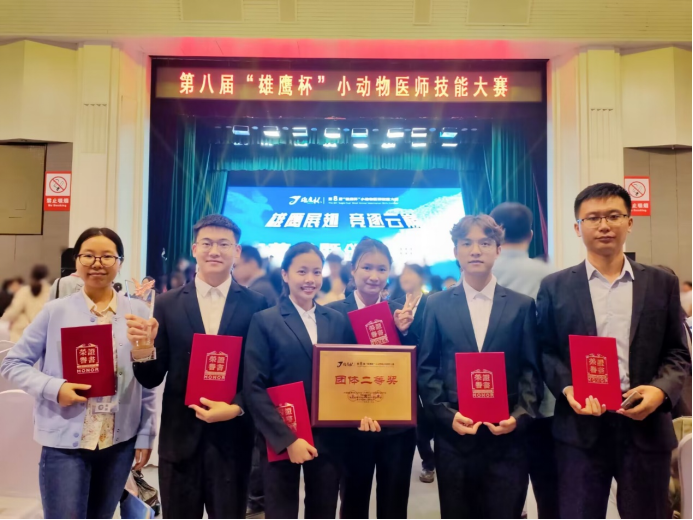 2023年9月12日至15日,由世界杯竞猜足球网副院长何家康教授带队,邹灵秀、苏接瑜、丁嘉烽老师指导的本科生闭云贵、黎波宏、唐筱婷和周琪媛代表广西大学在吉林长春参加了第八届“雄鹰杯”全国小动物医师技能大赛总决赛。