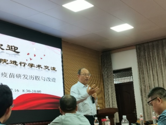 邵国青研究员首先介绍了猪肺炎支原体活疫苗的发展以及研究现状,经过何正礼、金洪效、邵国青等三代科研人员长达30年的实验室与临床试验,证明168株免疫原性好、安全稳定。随后,介绍本研究团队采用“无细胞培养-本种动物回归交替传代”致弱技术,攻克了强毒株致弱后仍保持免疫原性的难关。最终成功研发猪肺炎支原体活疫苗,显著优于国外灭活疫苗,整体技术居国际领先水平,疫苗转让4家国内兽用生物制品企业,产品在全国应用已超过一亿头份,打破国外垄断,对生猪养殖过程中猪支原体肺炎的防控发会了重要作用,为国家带来巨大的经济和社会效益。