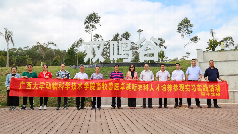 2020年11月19日,为贯彻落实本院培养卓越新农科人才培养的目标,世界杯竞猜足球网司红彬副院长、沈水宝副教授组织研究生与广西园丰牧业集团股份有限公司技术骨干等36人参加了到园丰集团的参观实习实践活动。为产业振兴和人才培养出经验做示范,开创互惠共赢新局面。