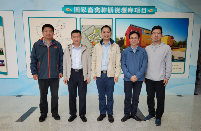 在会议期间,陆阳清副院长和刘庆友教授还走访了中国农业科学院北京畜牧兽医研究所,与副所长文杰、办公室主任唐湘方、处长王皓宇以及赵学明研究员进行交流,并开展合作洽谈。中国农业科学院北京畜牧兽医研究所是国家级社会公益性畜牧兽医综合科技创新研究机构,建有动物营养学国家重点实验室、国家家养动物种质资源库和奶业国际联合实验室等国家级平台,畜牧学科评估为A+,是我国畜牧行业科研创新和成果转化优势单位。经过交流洽谈,双方初步达成自愿结成“政、产、学、研、用”全方位合作伙伴关系的意向。双方本着“优势互补,共同发展”的原则开展合作,充分发挥双方的优势和特色,不断拓宽合作领域,实现资源共享。重点在人才培养、项目合作、成果转化、基地共建、学术交流、党建工作等方面开展多领域、深层次、全方位合作,推动校所高质量发展,特别是通过合作培养研究生,合作申报科研课题和奖项,形成“强强联合,互融互促”的双赢局面,全力提升广西大学畜牧学科建设水平。
