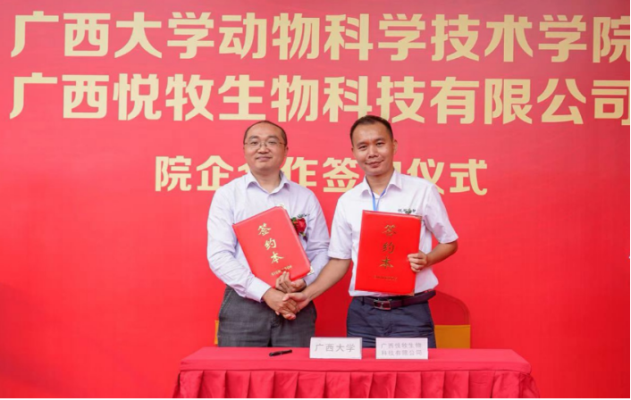 世界杯竞猜足球网司红彬副院长与广西悦牧生物科技有限公司总经理张远波代表双方现场签署了院企合作协议书。世界杯竞猜足球网将充分发挥自身理论与技术领域的优势,为广西兽医社会化服务示范点兽医人才开展统一培训,补充理论基础知识及规范实验操作技术,率先共建联合研发平台,共同推进“产学研用”的协同创新的新农科人才培养模式,做好兽医社会化服务的人才支撑,为地方经济发展做出贡献。