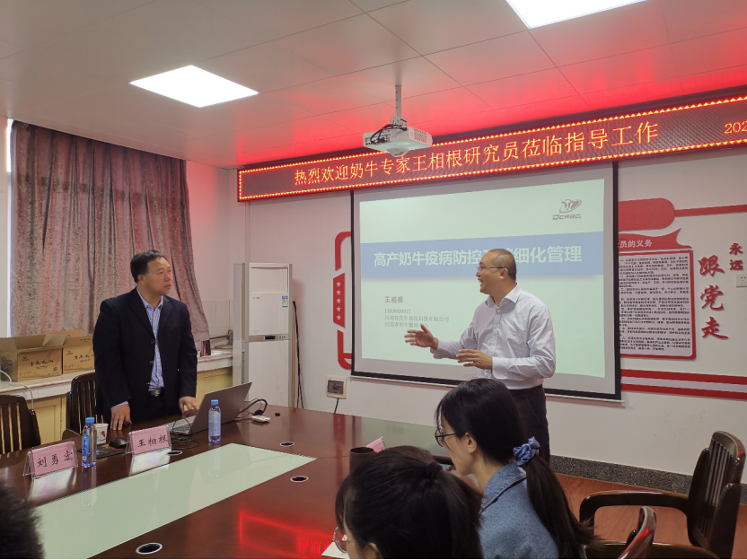 11月09日上午,我院有幸邀请到河南省奶业体系专家服务团专家——王相根研究员对我院师生进行“高产奶牛疫病防控及精细管理”专题讲座。教师及研究生学生共计40余人参会。讲座由世界杯竞猜足球网司红彬副院长主持。