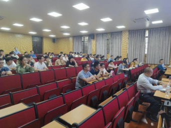 副院长何家康教授主持报告会 报告会场的老师和学生们认真听报告