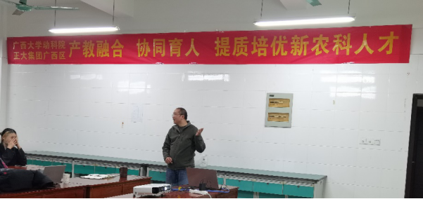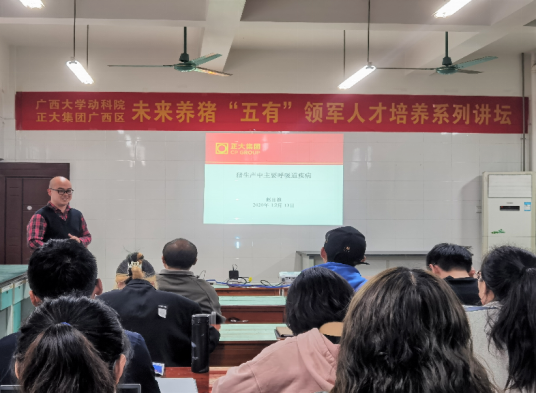 2020年12月13日,为促进产教融合、培养未来养猪“五有”领军人才,我院有幸邀请到了正大集团广西区兽医总监赵日浪先生开展主题讲座。