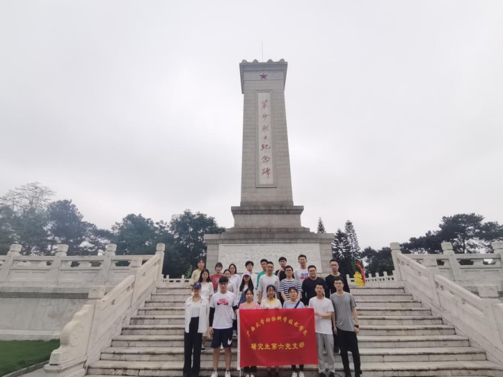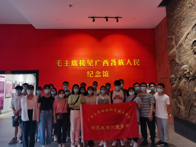 4月24日,世界杯竞猜足球网研究生第六党支部组织全体党员赴位于南宁人民公园的革命烈士纪念碑缅怀革命先烈,同时到毛主席接见广西各族人民纪念馆接受革命传统教育,并开展党史学习教育,向老一辈革命家学习。