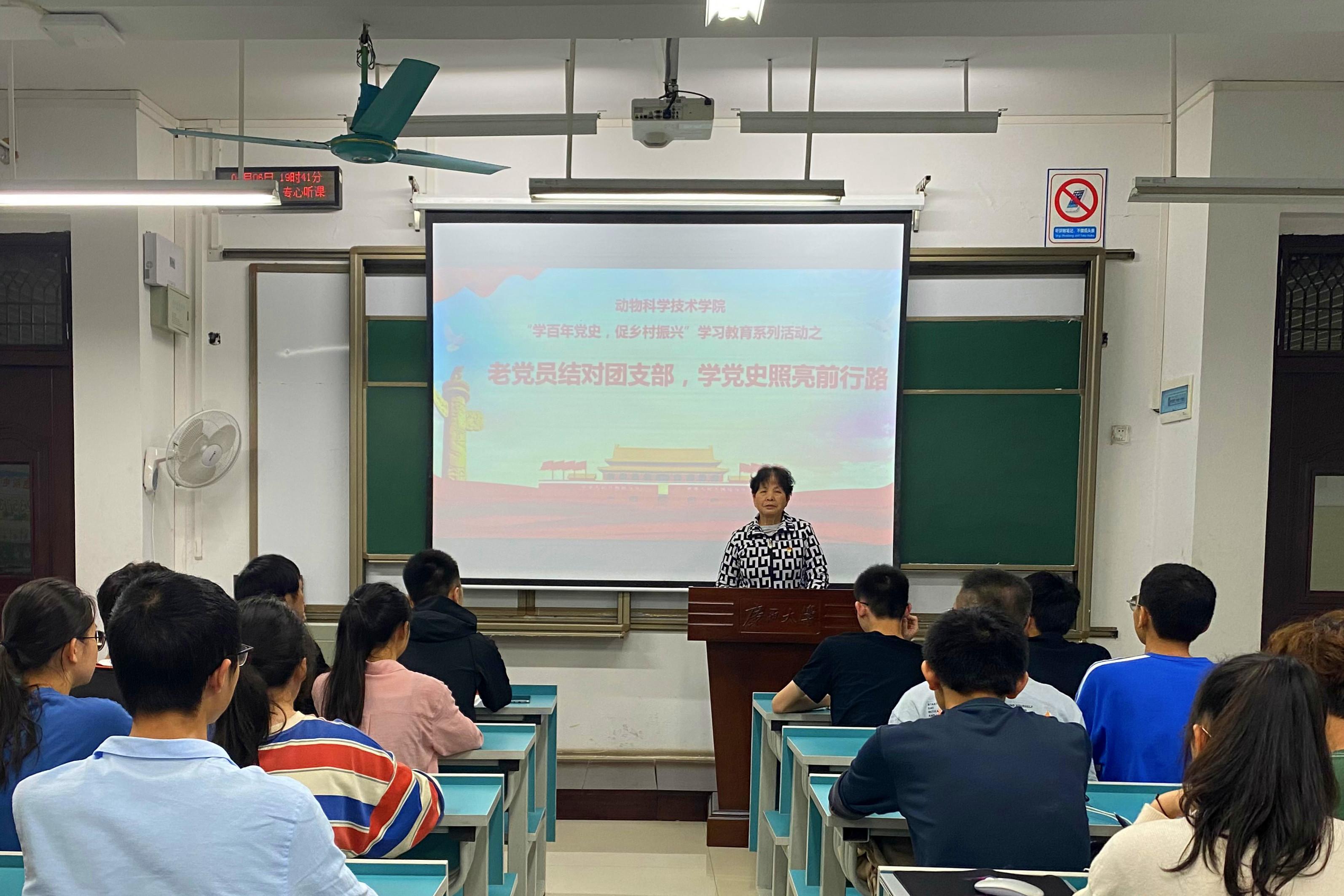 为不折不扣抓好党史学习教育,引导团员青年厚植爱党、爱国、爱社会主义情怀,让红色基因、革命薪火代代传承,世界杯竞猜足球网团委邀请李德富、陈熙全、韦芬隆、农世斌、汤炜、吴杰6名老党员分别与本科生动物医学191班、研究生五班等6个团支部结对开展“学党史、强信念、跟党走”学习教育。