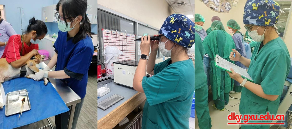 7月1日至9月30日,我院3名学生(黄丽柔、李俐璇和胡嘉敏)顺利完成泰国朱拉隆功大学动物医院小动物临床诊疗实习活动。在三个月的小动物临床诊疗实习中,三位同学制定了实习计划,并委派泰国导师进行一对一地指导。实习内容涵盖了临床病例的处理、诊疗、手术及术后护理等方面。学生通过临床病例分析、手术观摩学习和交流研讨会等实践活动,不仅掌握了先进医疗技术和设备操作,提升了英文沟通能力,拓展了专业知识,而且培养了辩证思考和独立研究的能力。与泰国学生的学习交流中,彼此建立了深厚的国际友谊,成为她们人生中难忘的一段经历。感谢学院为她们提供宝贵的学习机会,架起了中泰兽医临床技术和文化交流的桥梁。希望明年实习能持续开展。