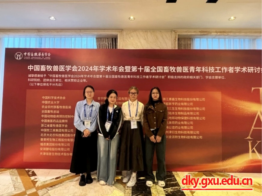 10月25-28日,中国畜牧兽医学会2024年学术年会暨第十届全国畜牧兽医青年科技工作者学术研讨会在浙江省嘉兴市桐乡市举办。会议由中国畜牧兽医学会主办,动物生理生化学分会、动物繁殖学分会等多个畜牧兽医专业相关的学会协办,主题为“基础为本、源头创新、交叉融合”。来自全国畜牧兽医科研、教学、生产及相关领域的专家、学者、企业管理者、在校研究生近600人参加会议,5名两院院士出席大会。世界杯竞猜足球app赵亚楠、贾茹茹、王云、周东平4位硕士研究生受邀参加了本次会议。