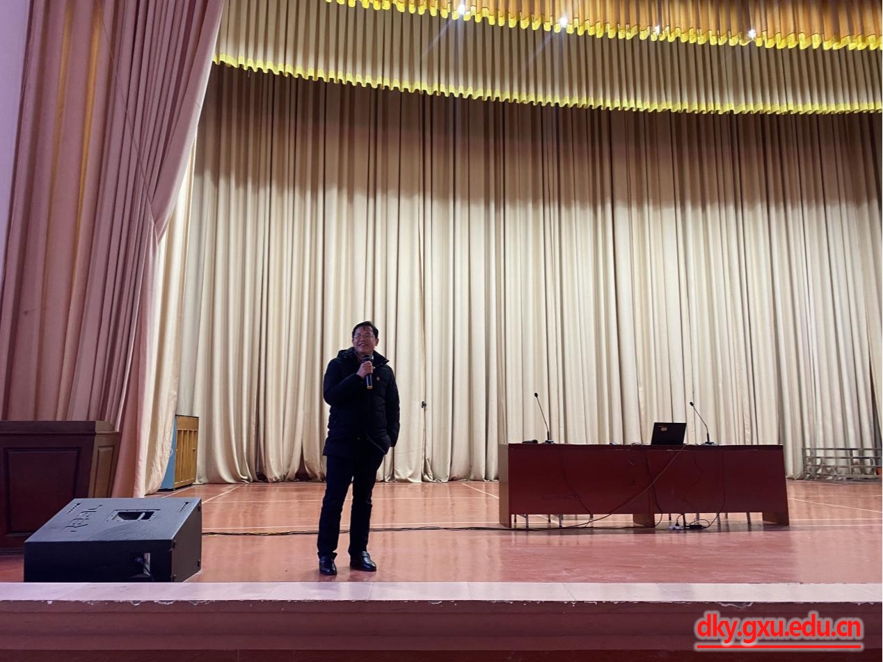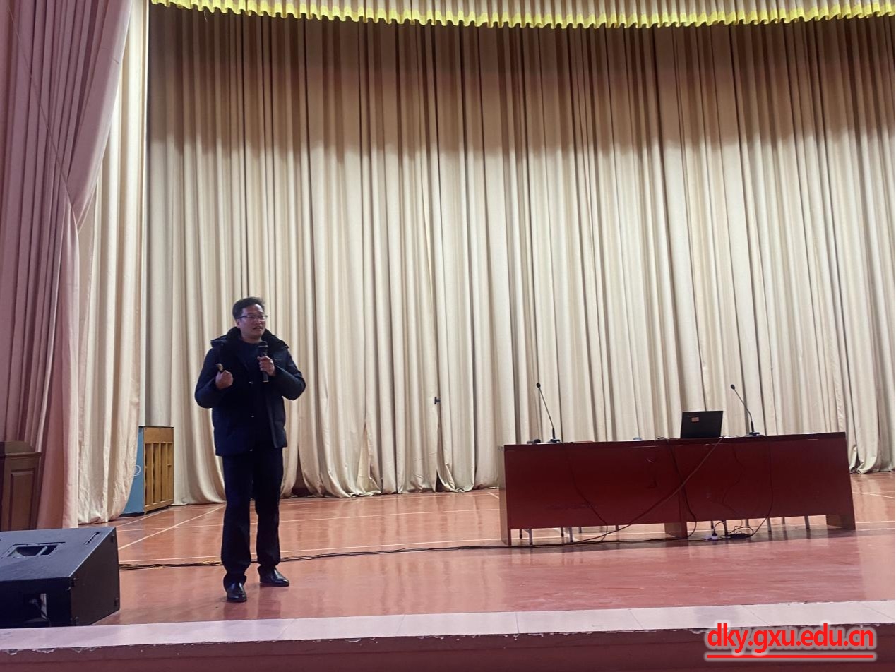 为切实提升广西大学本科生生源质量,吸引更多优秀学子到我校深造,12月21日,世界杯竞猜足球app党委书记韦小强带队,副院长何家康、副院长蒋钦杨、团委书记李丽娜、教学秘书覃志彪、专职组织员施君一行六人前往自治区示范性学校荔浦中学开展招生宣传。荔浦中学高三年级400余名学生及班主任老师在学校报告厅聆听宣讲报告。