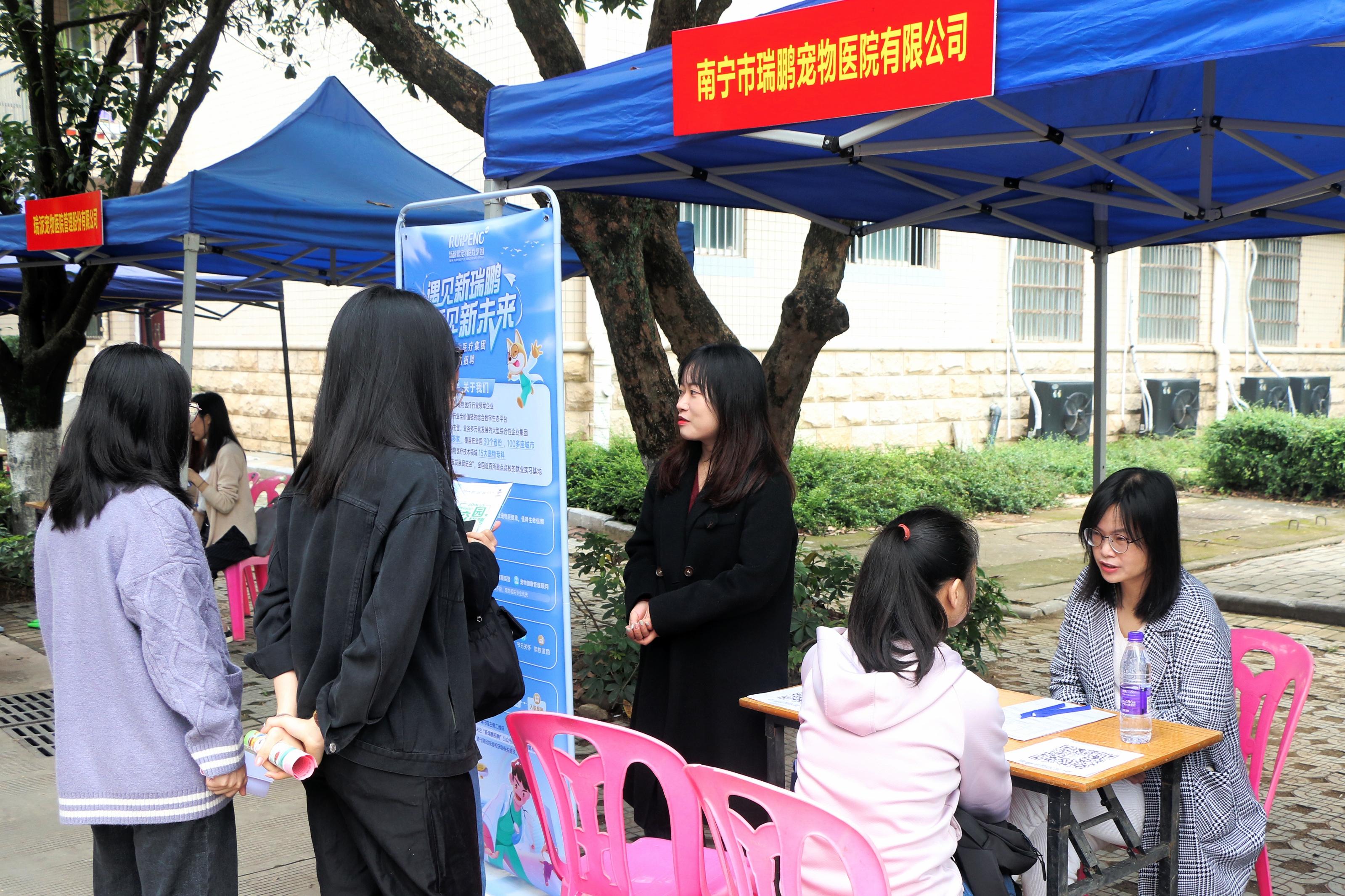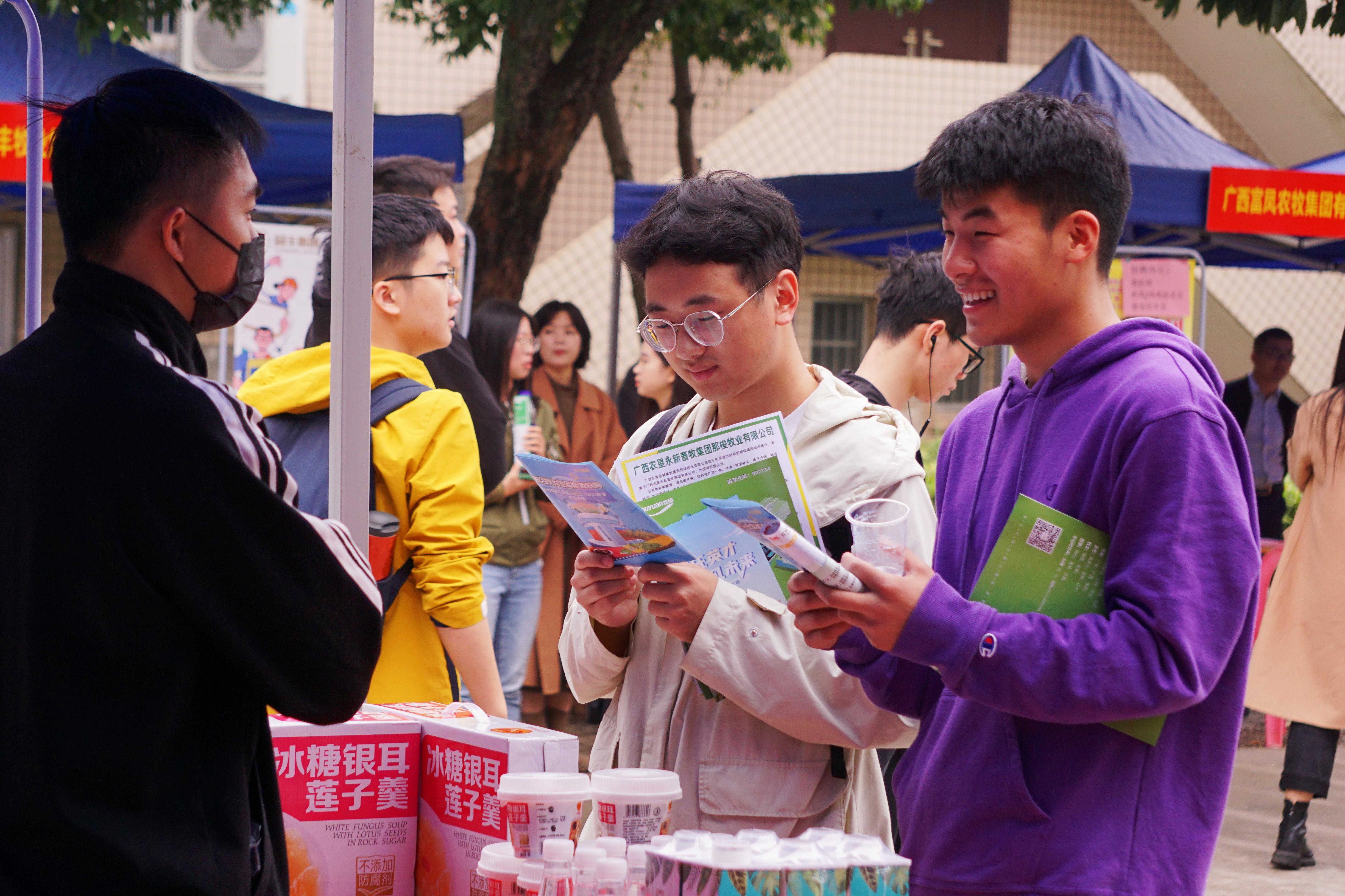 本次招聘会邀请了正大集团、广西农垦、自治区水牛研究所、温氏集团、双胞胎集团、力源集团、大北农集团、牧原集团、扬翔股份、新希望六和、瑞鹏宠物医疗等来自全国各地的60余家畜牧兽医、食品生产、生物医药、宠物诊疗等领域用人单位来校选聘英才,提供了生产管理、技术服务、产品研发、市场营销等千余个招聘岗位,涵盖本科、硕士和博士多个层次,为学生就业、实习带来了更为广阔的选择空间和发展平台。