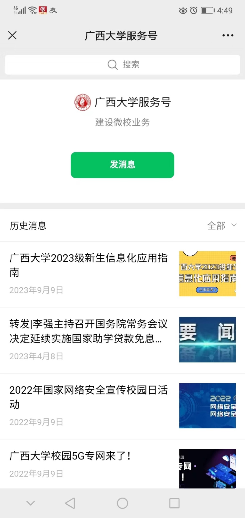 1、关注微信公众号“广西大学服务号”,