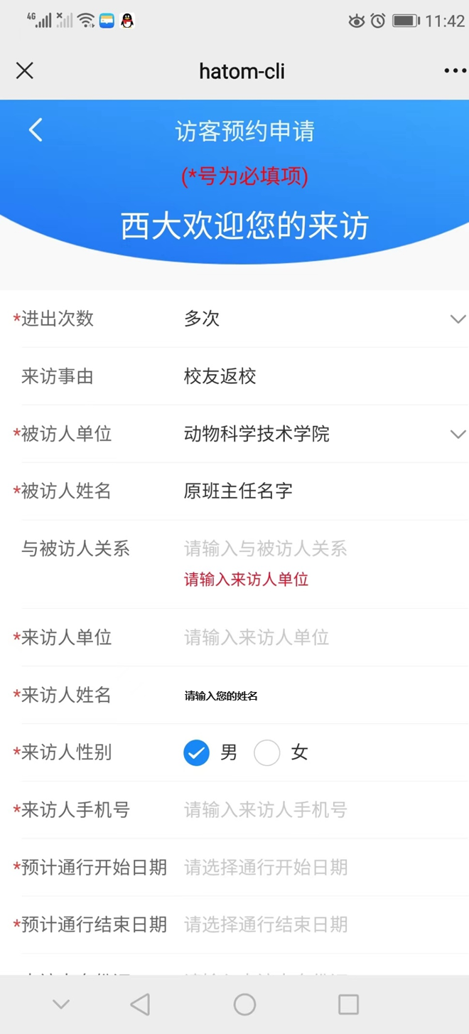 (3)来访理由,写 xxx级xxx班校友聚会